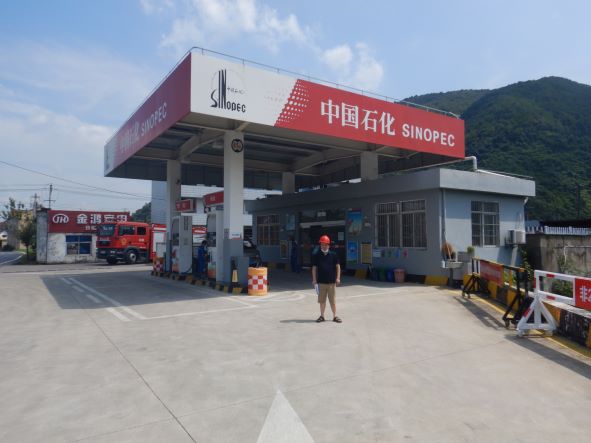 中國石化銷售股份有限公司浙江杭州富陽常安加油站(以下簡稱“常安加油站”)是中國石化銷售股份有限公司浙江杭州富陽石油支公司下屬加油站,成立于2007年10月9日,位于浙江省杭州市富陽區常安鎮董家村,主要經營汽油、柴油的零售業務(不涉及散裝汽油和自助加油),法人代表盛丹峰,統一社會信用代碼為91330183793694865A,該站現有員工2人,其中安全管理人員1人。 中國石化銷售股份有限公司浙江杭州富陽常安加油站持有浙江省商務廳核發的成品油零售經營批準證書(油零售證書第31140117號),持有原杭州市安全生產監督管理局核發的危險化學品經營許可證,登記編號:浙杭安經字[2018]10005187,有效期:2018年9月27日至2021年9月26日,許可經營范圍:帶儲存經營成品油:汽油;不帶儲存經營(店面零售)成品油:煤油。 加油站安裝有汽油卸油和加油油氣回收系統。加油區設置加油罩棚,罩棚頂部為輕鋼結構。罩棚下設置1臺雙油品雙槍和1臺單油品雙槍潛油泵式加油機(汽油加油槍帶油氣回收);埋地油罐區設有3只30 m3埋地臥式SF雙層油罐(非車道罐),其中30m3埋地臥式汽油罐2只,30m3埋地臥式柴油罐1只,油罐總容積折算為75m3(柴油罐折半計入),根據《汽車加油加氣站設計與施工規范》GB50156-2012(2014年版)的相關規定,該加油站為三級加油站。