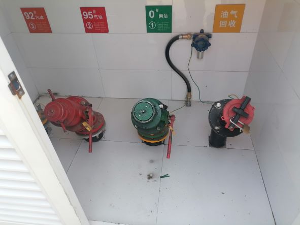 加油站設置汽油卸油和加油油氣回收系統(tǒng)。加油區(qū)設置加油罩棚,罩棚為鋼結構罩棚。罩棚下設置3臺雙油品四槍潛油泵型加油機(汽油加油槍帶油氣回收)和1臺單油品雙槍的潛油泵型加油機;埋地油罐區(qū)設有3只20m³的埋地FF油罐(玻璃纖維增強塑料雙層油罐),其中20m³汽油罐2只(分別為92#汽油罐、95#汽油罐),1只20m³柴油罐,油罐總容積折算為50m³(柴油罐折半計入),根據《汽車加油加氣加氫站技術標準》GB50156-2021的相關規(guī)定,該加油站為三級加油站。