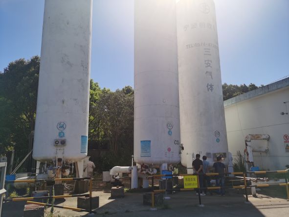 舟山億洋氣體有限公司(以下簡稱“舟山億洋”)成立于2003年11月,主要從事工業(yè)氣體充裝、儲存經(jīng)營,廠區(qū)設有氧氣、氮氣、氬氣、二氧化碳儲存及充裝設施。于2020年7月6日取得舟山市定海區(qū)應急管理局頒發(fā)的《危險化學品經(jīng)營許可證》,編號:定應急危經(jīng)字[2020]0019。許可范圍:*儲罐區(qū):氧[液化的](50立方米儲罐1個)、氮[液化的](20立方米儲罐1個)、氬[液化的](20立方米儲罐1個)、二氧化碳[液化的](50立方米儲罐1個、30立方米儲罐1個),充裝間:氧[壓縮的]1.2t、氮[壓縮的]0.27t、氬[壓縮的]0.5t、二氧化碳[液化的]1t*年充裝:氧[壓縮的]28萬瓶、氮[壓縮的]5萬瓶、氬[壓縮的]1.5萬瓶、二氧化碳[液化的]2萬瓶。有效期至2023年7月6日。
